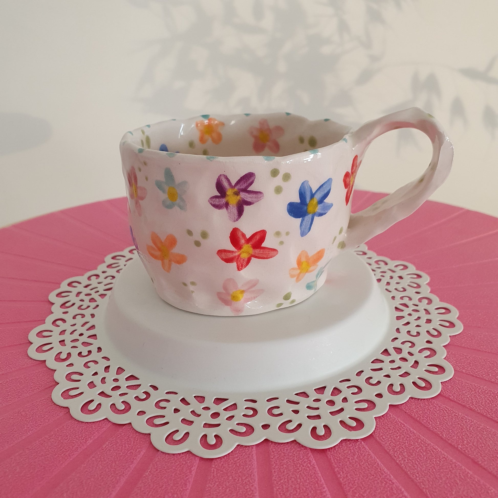 Handmade Pottery Mug .. Customized Letter .. Colorfull Flowers