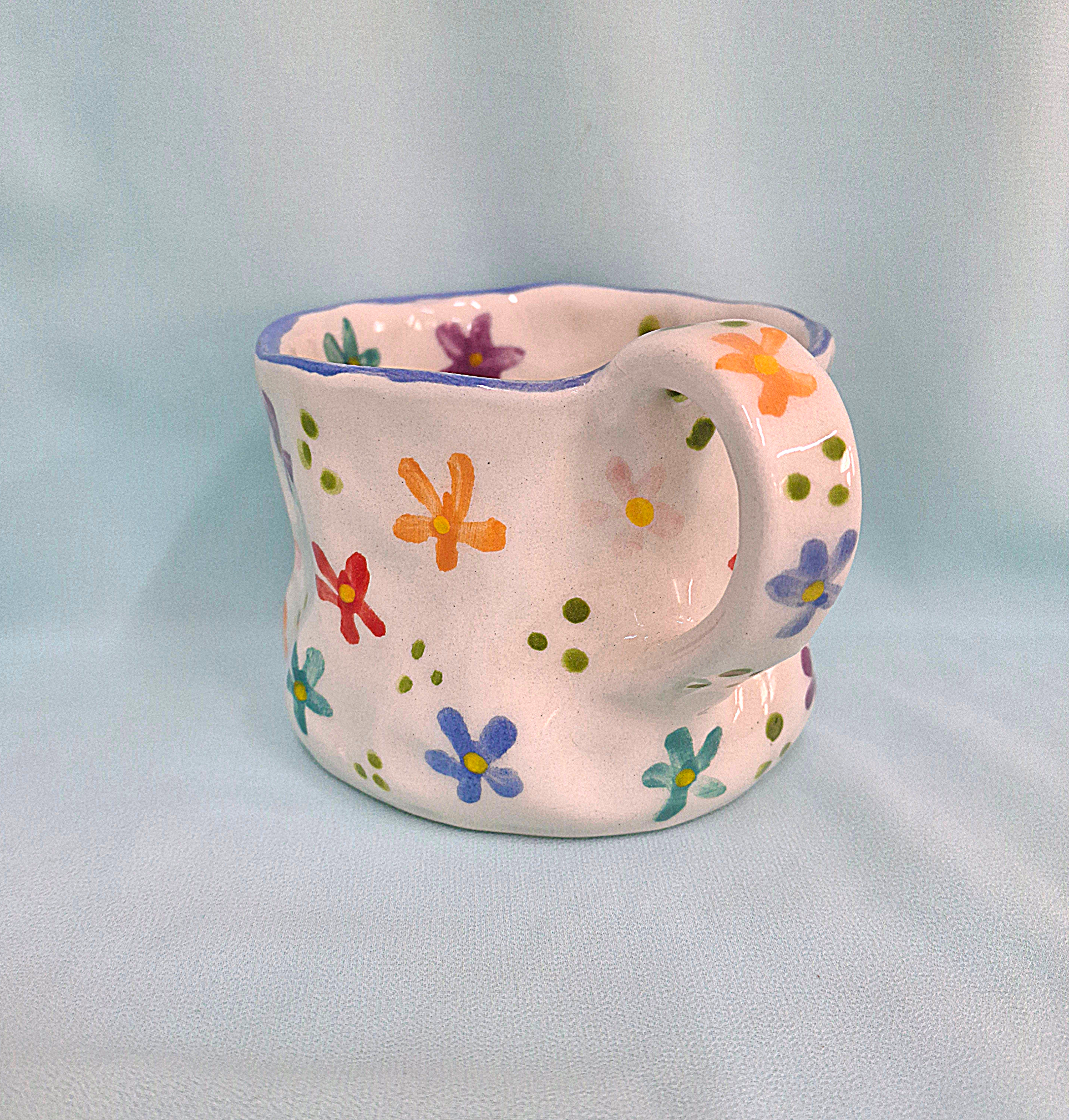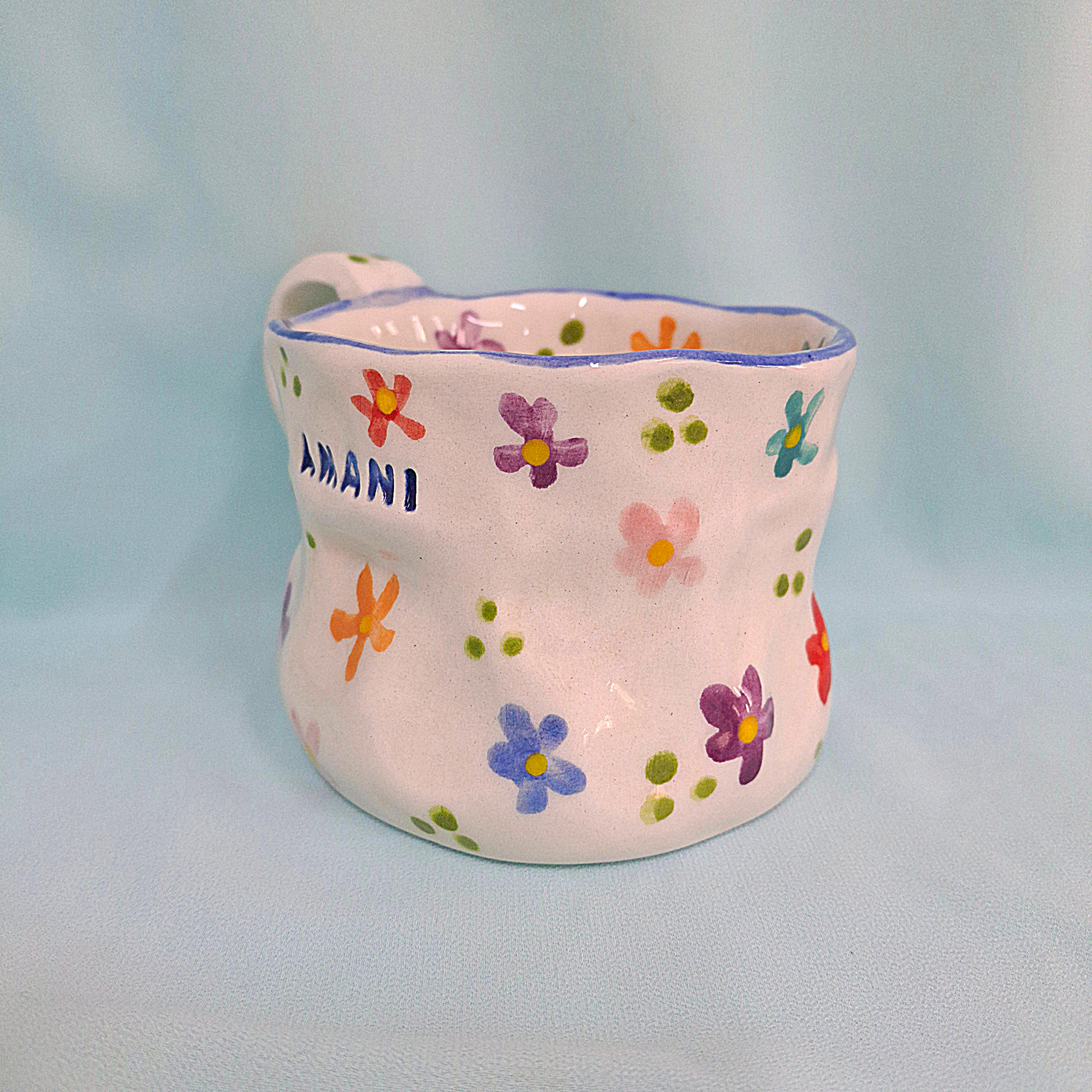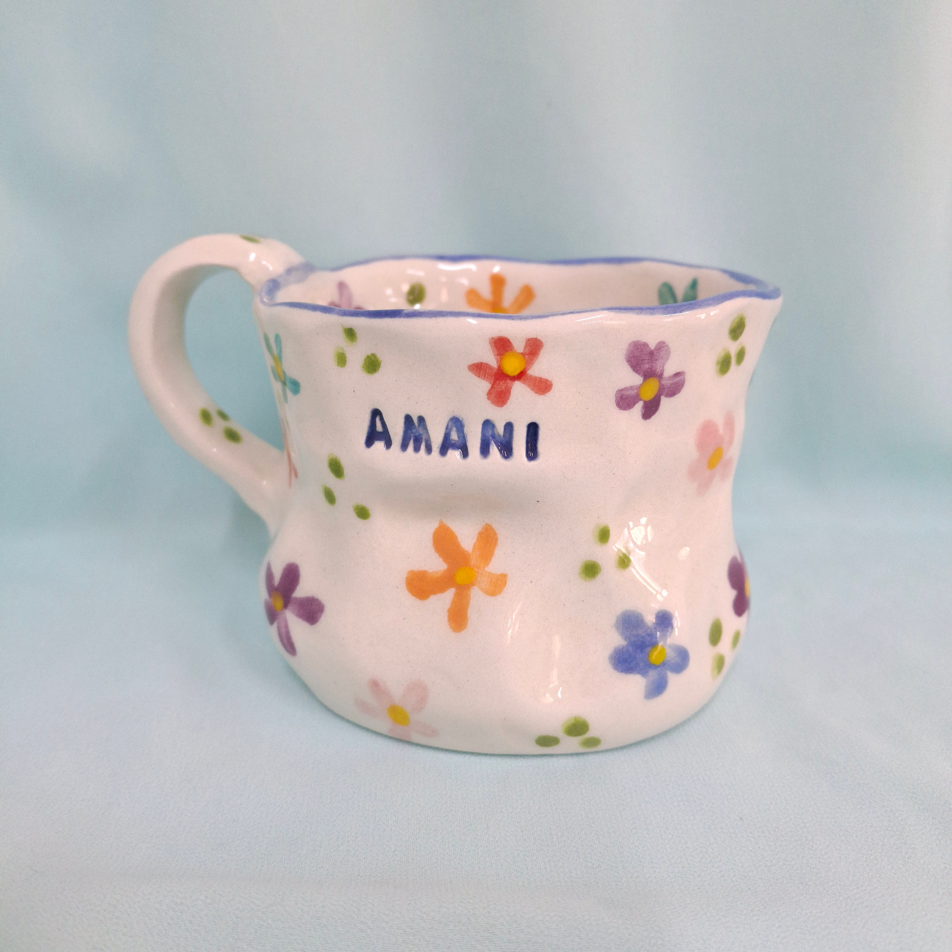 Handmade Pottery Mug . Customized Name . Colorful Flowers . B