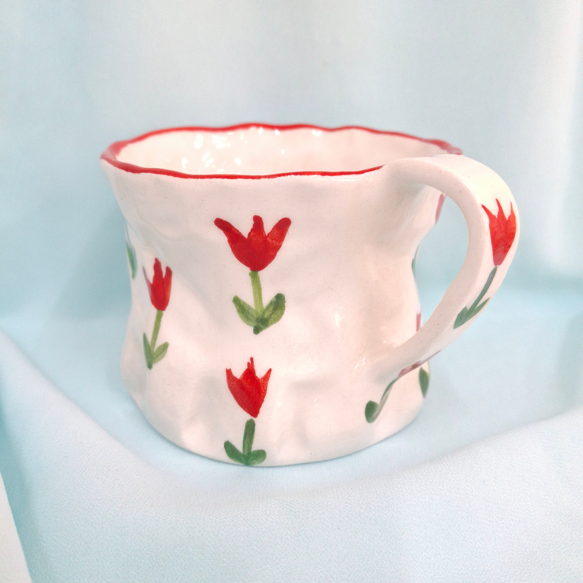 Handmade Pottery Mug . Customized Name . Red Tulip